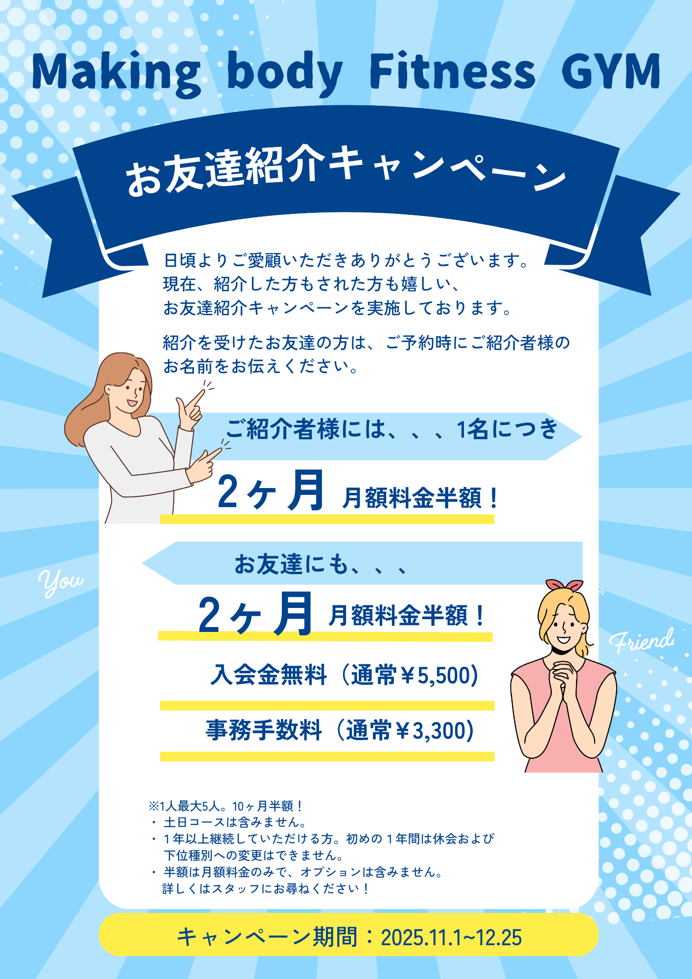 ただいま、みなさまへの感謝の気持ちを込めて 🎁 「お友達紹介キャンペーン」 を実施中です!