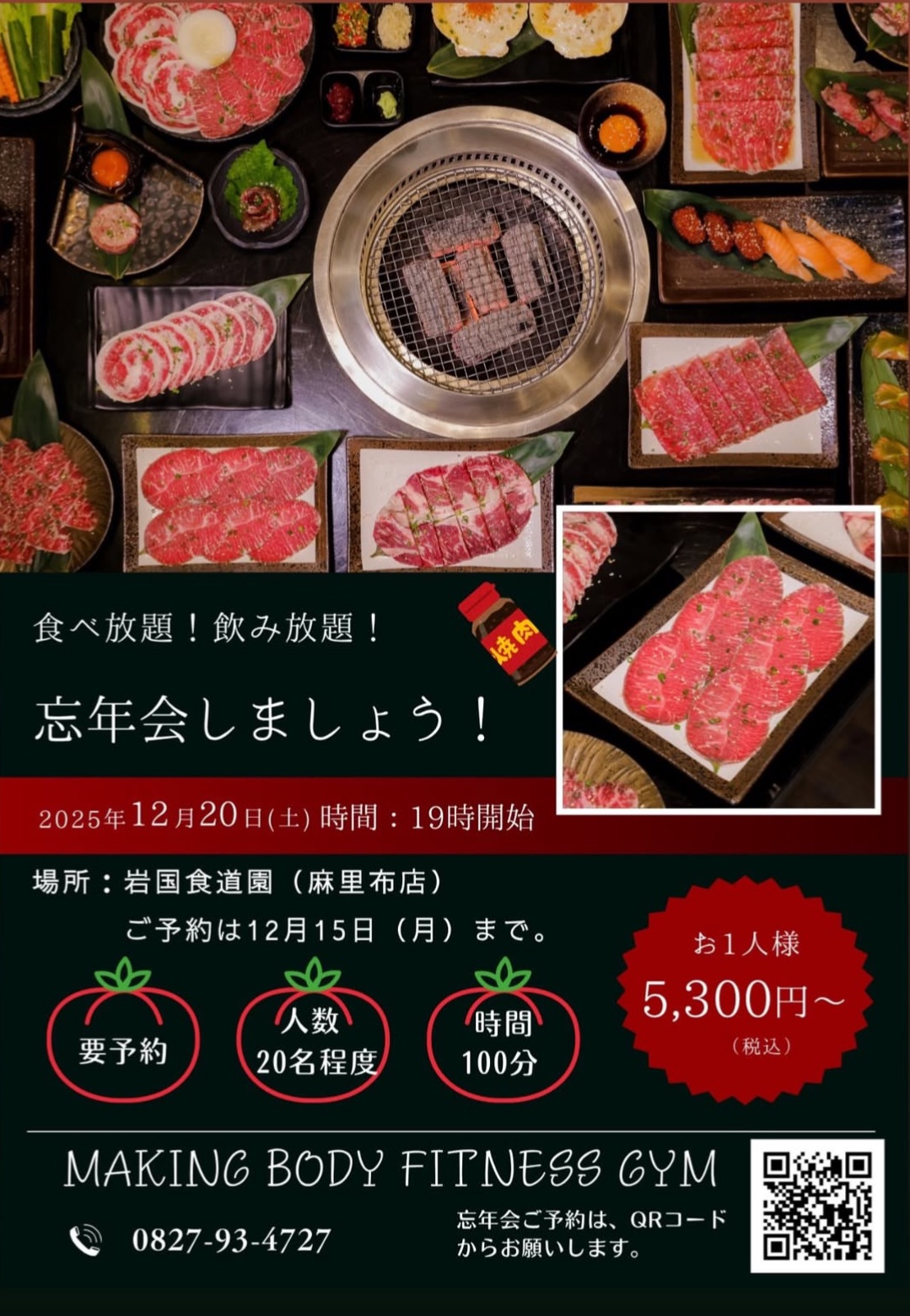 🔥 みんなでお肉を囲みながら、今年の筋トレ話で盛り上がりましょう!